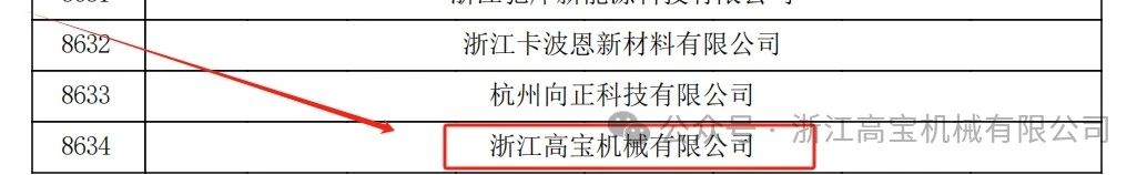 浙江高寶機械有限公司通過省認定機構2024年認定報備的高新技術企業(yè)